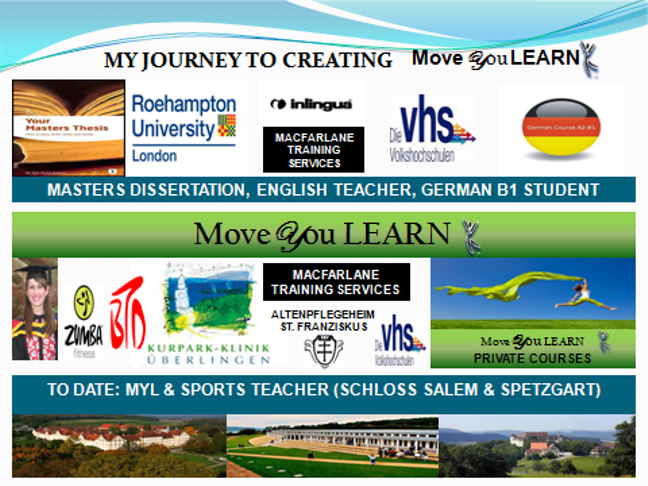 Hallo, mein Name ist Hazel Mackie. Geboren bin ich in Derbyshire in England und Englisch ist meine Muttersprache. Als ausgebildete Sportlehrerin (BSc, PGCE, QTS), Englisch Sprachen Trainerin, Zumba® Instructor und Tanz- und Bewegungspsychotherapeutin, ist es meine Passion, Bewegung in den Prozess des Lernens zu integrieren.